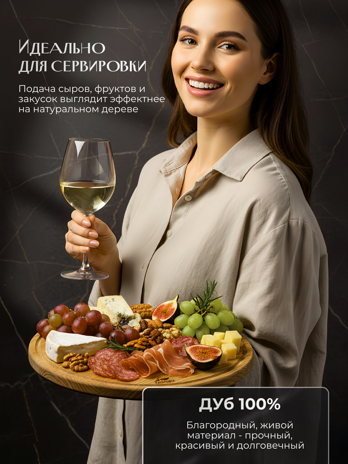 Мы используем только высококачественный, экологически чистый дуб. Это гарантирует безопасность вашей еды и заботу об окружающей среде. Дерево проходит тщательную обработку без применения вредных химикатов.