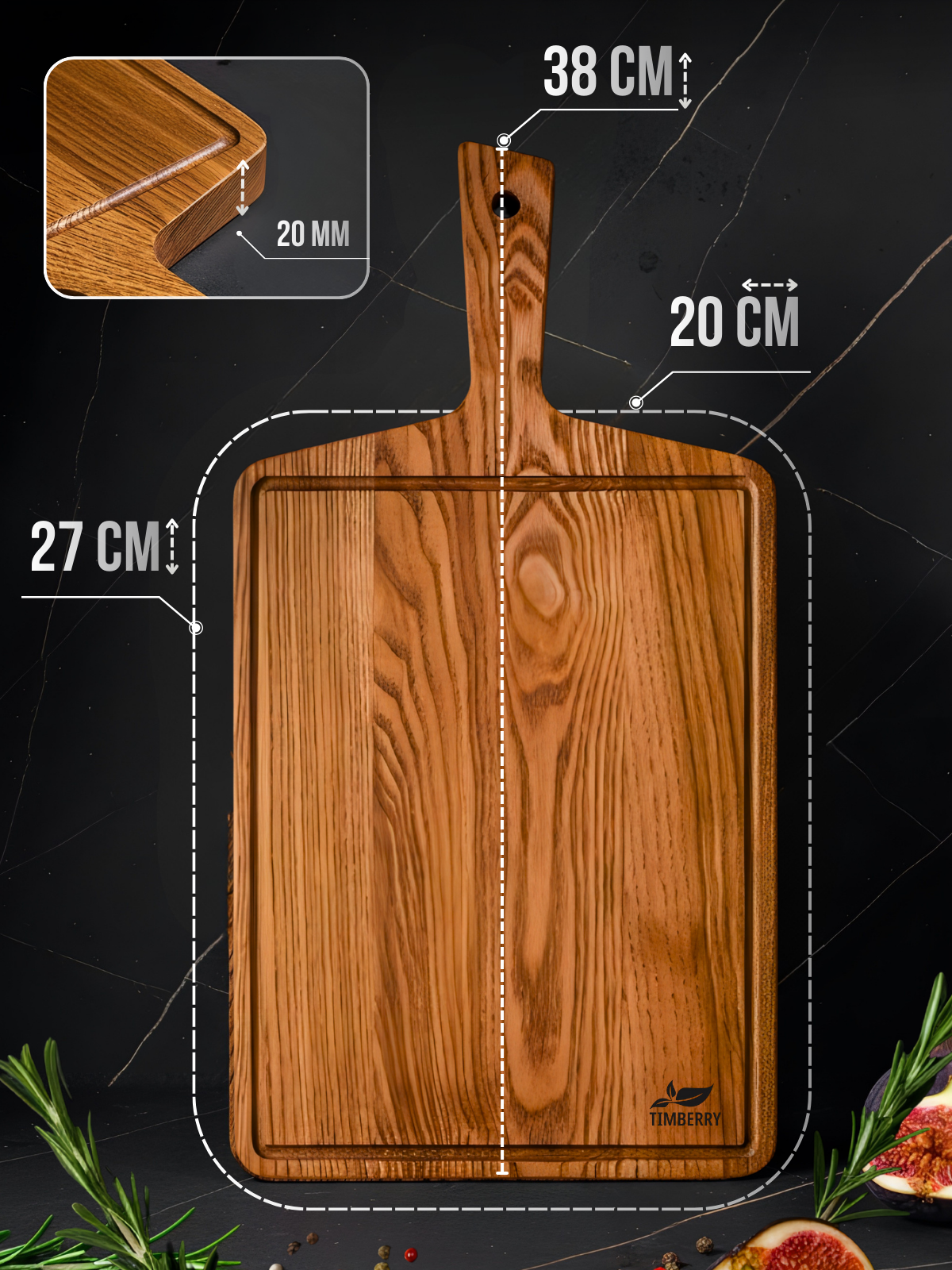 Откройте для себя идеальное сочетание функциональности и натуральной красоты с разделочной доской TIMBERRY. Эта доска, выполненная из высококачественного дуба, станет незаменимым помощником на вашей кухне, а также стильным элементом декора. Размеры 38х20 см делают ее универсальной для самых разных задач, от нарезки овощей до сервировки закусок.