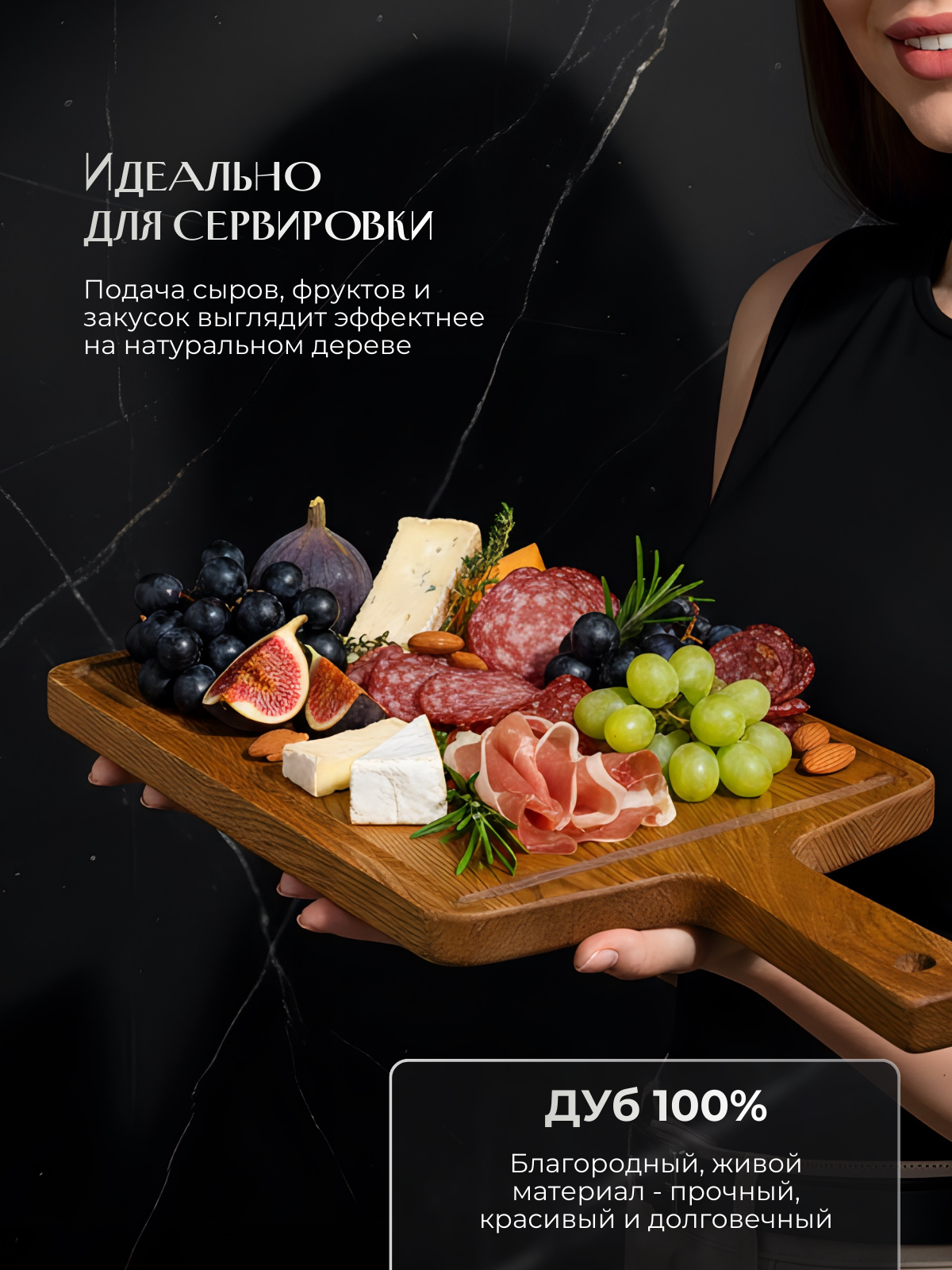 Интегрированная ручка делает использование доски максимально удобным. Вы сможете легко переносить ее, подвешивать для хранения или использовать в качестве стильного подноса для подачи сыра, колбас или закусок к столу. Эргономичная форма ручки обеспечивает комфортный захват.